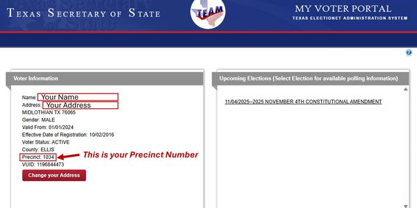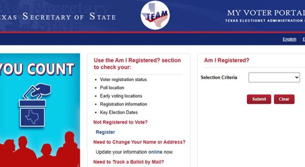 Go to the Texas Secretary Of State "My Voter Portal: website.